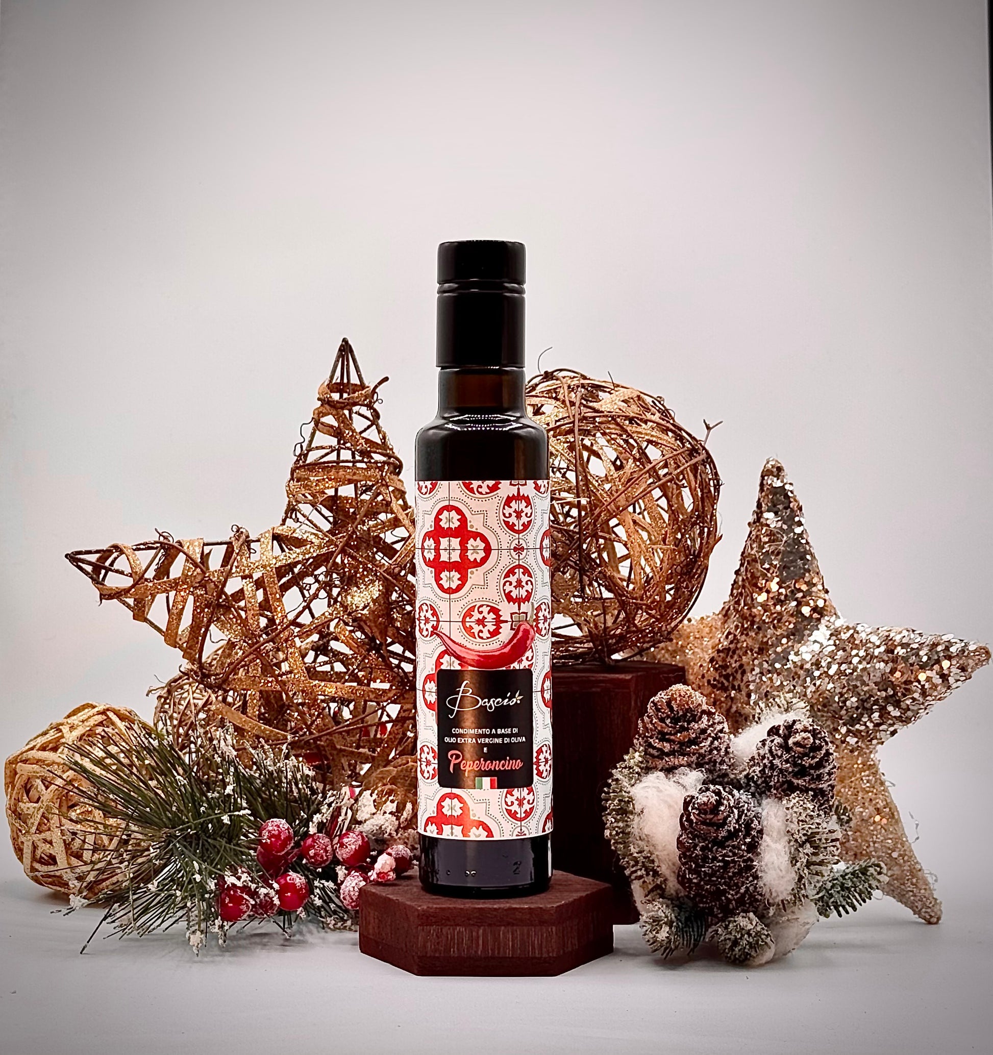 Ottenuto da olive della cultivar "Nocellara del Belice" e Peperoncini della varietà "Carolina Reaper" (tra i più piccanti al mondo), estratto a freddo ad una temperatura inferiore a 27°C. All'assaggio ha un piccante che delicatamente avvolge il palato e poi persiste senza mai eccedere e coprire i sapori dei vostri piatti. Ideale per condire, a piacimento, legumi, carni, pizza (ottimo!) e tutto ciò che la fantasia culinaria vi ispira...sapori che vengono esaltati già dall'utilizzo di poche gocce.